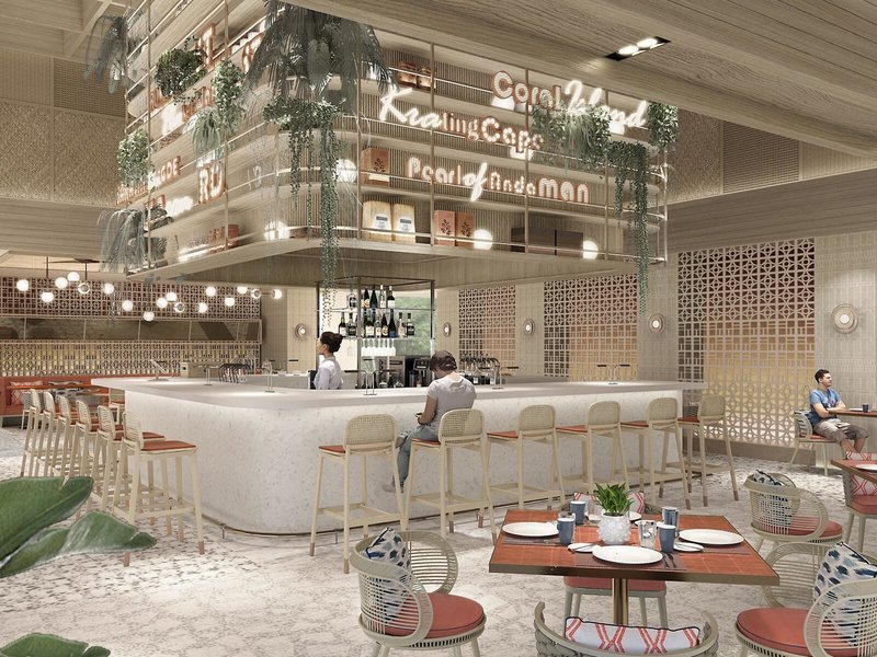 - Hlavná reštaurácia Bistro Grill & Bar: Kuchyňa: medzinárodná, thajská, bufet, à la carte, za poplatok, denne 06:30 - 10:30 a 18:30 - 21:30, dvakrát večer
