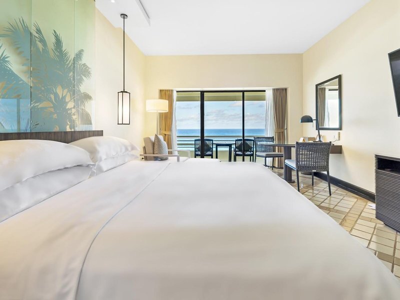 So wohnen Sie: In den Zimmern gibt es eine Klimaanlage und eine Heizung. Ein Balkon mit Meerblick in den meisten Unterkünften lädt zum Verweilen ein. Die Zimmer verfügen über ein Doppelbett, ein Queensize-Bett oder ein Kingsize-Bett. Zustellbetten können angefordert werden. Außerdem sind ein Safe und eine Minibar verfügbar. Auch ein Kühlschrank, ein Minikühlschrank und eine Tee-/Kaffeemaschine sind vorhanden. Hinzu kommen ein Bügelset und eine Hosenpresse. Darüber hinaus sind ein Telefon mit Direktwahl, ein TV-Gerät mit Satelliten-/Kabelempfang, ein Radio und WiFi (ohne Gebühr) vorhanden. Im Badezimmer, ausgestattet mit einer Dusche und einer Badewanne, gibt es einen Haartrockner. Außerdem sind rollstuhlgerechte Zimmer mit barrierefreiem Badezimmer buchbar. Das Resort bietet Familien-, Nichtraucher- und Raucherzimmer.