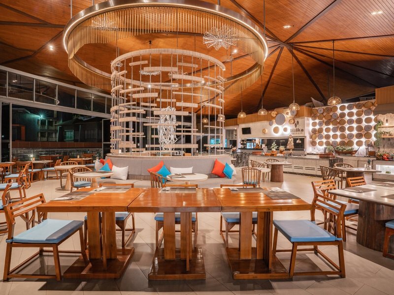 - Hauptrestaurant „Malika Terrace Restaurant“: Küche: international, regional, thailändisch, Fisch/Meeresfrüchte, Grillgerichte, glutenfreie Gerichte: gegen Gebühr, Anfrage & Reservierung notwendig, Kindermenü: gegen Gebühr, lactosefreie Gerichte: gegen Gebühr, Anfrage & Reservierung notwendig, vegetarische Gerichte: gegen Gebühr, à la carte, gegen Gebühr, täglich 06:30 Uhr - 23:00 Uhr, mit Terrasse
