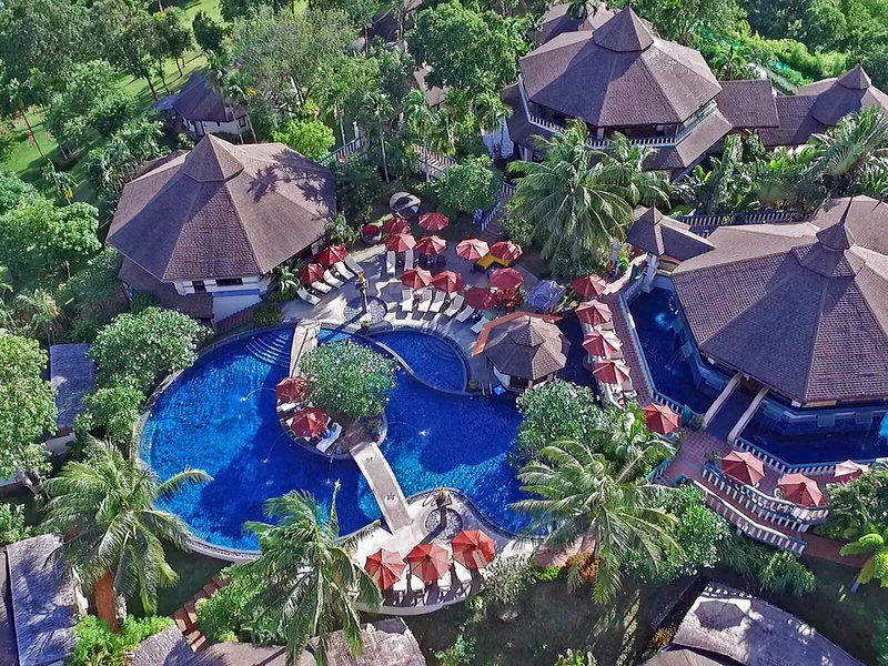 Lage & Umgebung Im Resort lassen sich überwältigende 180° Meeresblicke über 4 Buchten und Phuket-Stadt erleben. Das Resort liegt inmitten von tropischem Grün. Der bekannte Strand Nai Harn befindet sich nur etwa eine 8-minütige Fahrt entfernt. In der Umgebung gibt es ein Einkaufszentrum, eine Orchideenfarm sowie diverse Speisemöglichkeiten. Nach etwa 10 km erreicht man Phuket-Stadt, das Touristenzentrum Patongs sowie das Central Festival. Den internationalen Flughafen von Phuket erreicht man nach etwa 45 min - die Entfernung beträgt ca. 40 km.