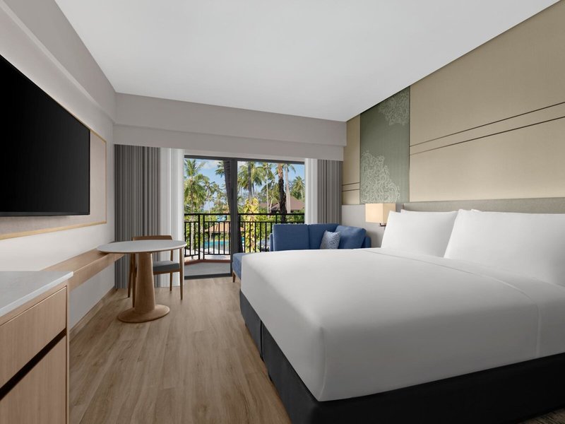 - Premier Guest Room Pool View (DZX6), Doppelzimmer, Nichtraucherzimmer, Poolblick, ca. 32 m², letzte Komplettrenovierung 2023, Gesamtanzahl der Räume in diesem Zimmertyp: 1, Aufteilung wie folgt: 1 Schlafzimmer, Babybett: ohne Gebühr, Anfrage & Reservierung notwendig, Moskitonetz, Klimaanlage: ohne Gebühr, individuell regelbar, kalt, Fußboden: Fliesenboden, Safe: ohne Gebühr, Bügeleisen, Kaffee-/Teezubereiter, Wasserkocher, Minibar: Wasser: ohne Gebühr, Telefon, Internet: WLAN/WiFi: ohne Gebühr, Fernseher: Flatscreen, im Schlafzimmer, Sat-TV, Roomservice: täglich, gegen Gebühr, Reinigungsservice: mehrmals pro Woche, ohne Gebühr, Dusche, WC, Bademantel: ohne Gebühr, Slipper: ohne Gebühr, Föhn, Balkon: mit Sitzgelegenheit