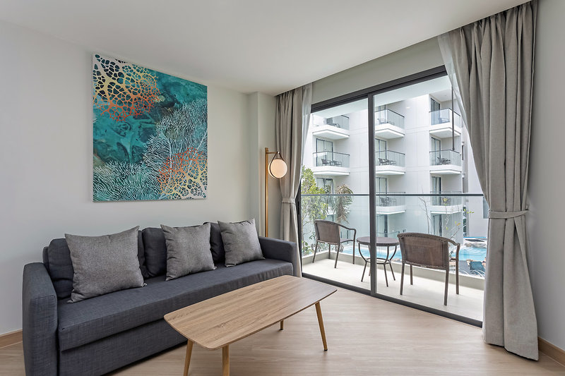 - 51-60 qm, Familien, Poolblick, kombinierter Wohn-/Schlafraum, Dusche, separates WC, Bademantel, Badeslipper, Haartrockner, Klimaanlage, individuell regulierbar, Mini-Kühlschrank, Safe, TV (Sat-TV), Kaffee/Tee, Balkon, direkter Poolzugang, Gemeinschaftspool, Anzahl Zimmer: 42