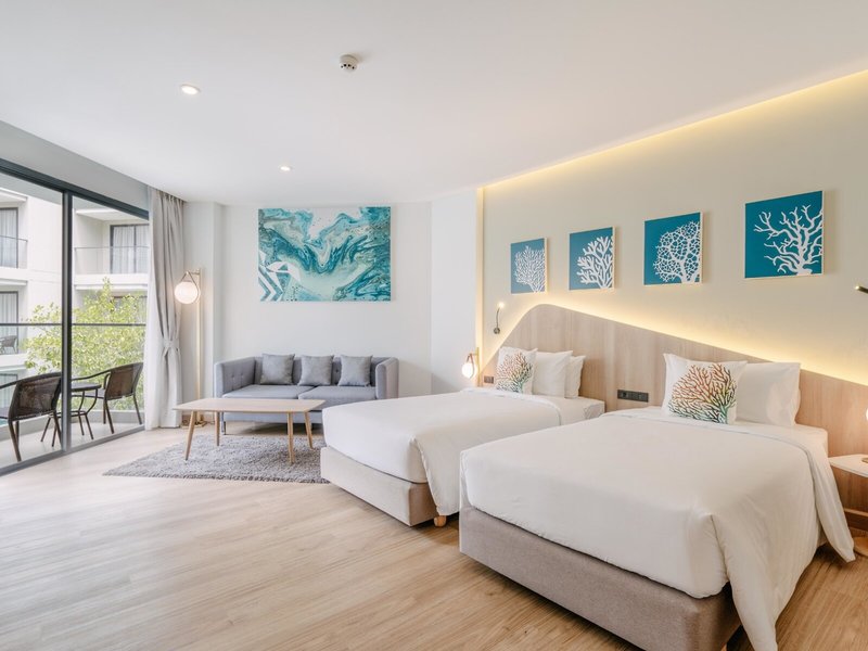- Deluxe Pool View (DZX1), Studio, Poolblick, ca. 46 m², Gesamtanzahl der Räume in diesem Zimmertyp: 1, Aufteilung wie folgt: 1 Schlafzimmer, 2 Einzelbetten (100x200cm), Klimaanlage: ohne Gebühr, individuell regelbar, Fußboden: Laminat, Safe: ohne Gebühr, Sofa, Schreibtisch, Kühlschrank, Kaffee-/Teezubereiter, Minibar: gegen Gebühr, Wasser: ohne Gebühr, Telefon, Internet: WLAN/WiFi: ohne Gebühr, Fernseher: Flatscreen, im Schlafzimmer, Sat-TV, Roomservice: täglich 11:00 Uhr - 22:00 Uhr, gegen Gebühr, Reinigungsservice: täglich, ohne Gebühr, Dusche, Badewanne, WC, Bademantel: ohne Gebühr, Slipper: ohne Gebühr, Föhn, Balkon: mit Sitzgelegenheit