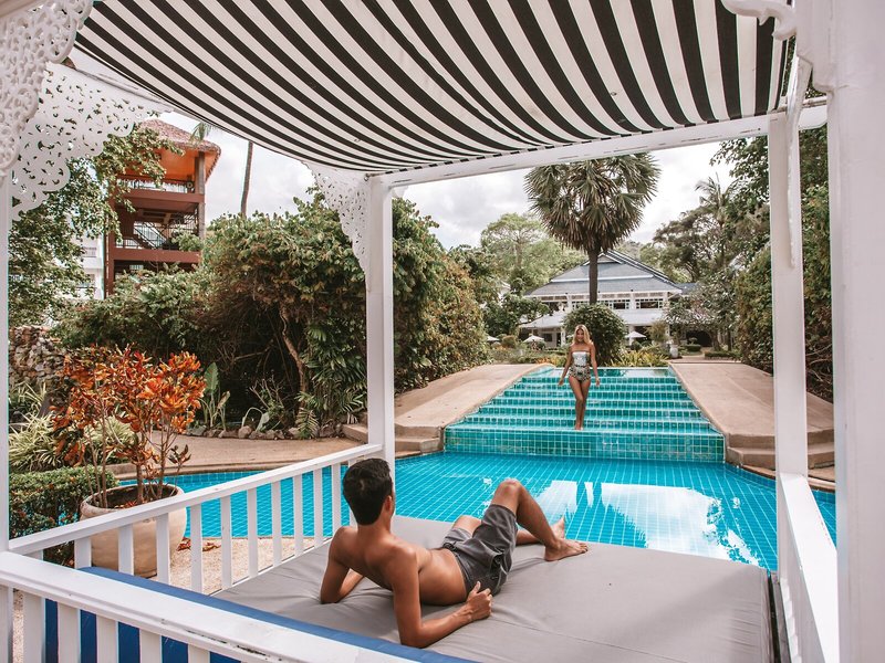 Lage & Umgebung Das Resort liegt am Karon Beach, einem der schönsten der langgezogenen Naturstrände von Phuket. Hier kann man wunderschöne Sonnenuntergänge beobachten. Nach Phuket-Stadt sind es rund 20 km, Patong Beach mit den beliebtesten Nachtclubs der Insel liegt nur eine kurze Fahrt entfernt. Das Resort befindet sich auf einem rund 8 ha großen Anwesen, das auf einer Länge von ca. 500 m direkt an den Strand angrenzt. Die 5 Swimmingpools, der üppige Garten und die niedrigen Gebäude sind die Markenzeichen des Resorts. Zum internationalen Flughafen Phuket sind es rund 48 km (über die Straßen).