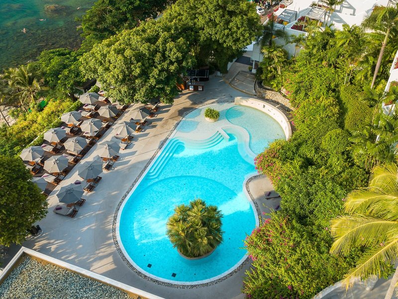 Lage & Umgebung Das Hotel liegt an der Südspitze von Phuket, an einem Hang, und bietet einen herrlichen Blick über die ca. 900 m lange Strandbucht von Nai Harn Beach. In rund 40 min erreicht man den Flughafen und in etwa 20 min das Stadtzentrum mit seinen zahlreichen Unterhaltungs- und Einkaufsmöglichkeiten.
