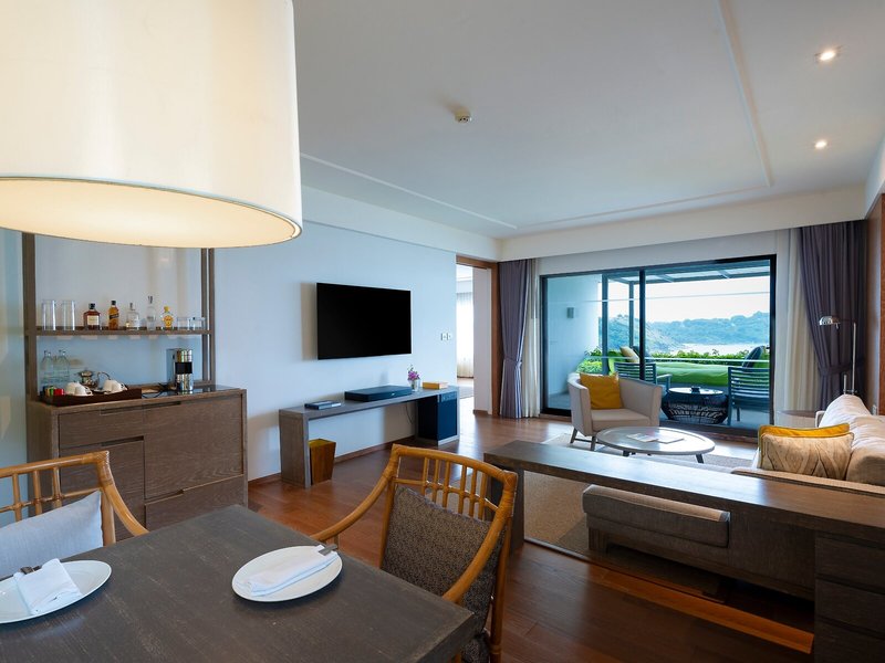 Poloha a okolie: Hotel sa nachádza na svahu na južnom cípe Phuketu a ponúka nádherný výhľad na približne 900 metrov dlhý záliv pláže Nai Harn. Letisko je vzdialené približne 40 minút a centrum mesta s množstvom zábavných a nákupných možností je vzdialené asi 20 minút.