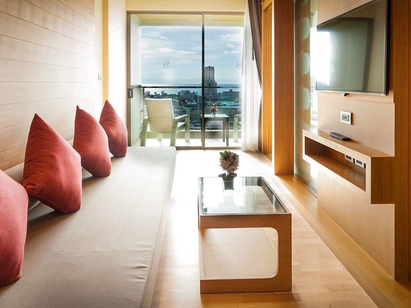 So wohnen Sie: In den Zimmern gibt es eine Küche und ein Badezimmer, für angenehmes Raumklima sorgt eine Klimaanlage. Auf dem Balkon oder der privaten Terrasse der meisten Zimmer können die Gäste entspannen und den Blick auf das Meer genießen. Die Zimmer verfügen über ein Doppelbett oder ein Kingsize-Bett. Zustellbetten können angefordert werden. Außerdem sind ein Safe und eine Minibar verfügbar. Auch ein Minikühlschrank und eine Tee-/Kaffeemaschine sind vorhanden. Darüber hinaus sind ein Telefon, ein TV-Gerät und WiFi (ohne Gebühr) vorhanden. Die Badezimmer sind ausgestattet mit einer Dusche und einer Badewanne. Für den täglichen Gebrauch stehen ein Haartrockner, Bademäntel und ein Telefon zur Verfügung. Buchbar sind rollstuhlgerechte Zimmer. Das Hotel bietet Familien- und Nichtraucherzimmer.