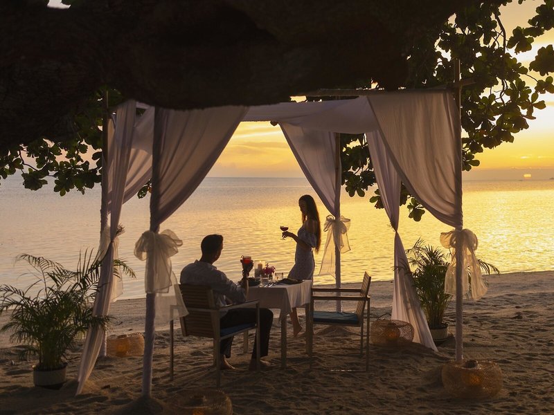 Poloha a okolie: Rezort sa nachádza priamo na pláži Sunset Beach (Haad Rin) v juhozápadnej časti ostrova Koh Phangan. Odtiaľto môžete ľahko preskúmať početné prírodné krásy ostrova. Pláž Sunrise Beach (Haad Rin Nok), kde sa koná svetoznáma párty Full Moon Party na Koh Phangane, je vzdialená len asi 10 minút chôdze. Ikonický chrám Wat Phra Yai, známy ako Veľký Budha, je vzdialený približne 8 km. Letisko Koh Samui je vzdialené približne 30 km. Čas transferu: približne 1 hodina 40 minút.