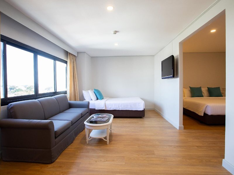 So wohnen Sie: Für angenehmes Raumklima in den Zimmern sorgen eine Klimaanlage und ein Ventilator. Die Gäste können den Stadtblick von Balkon oder Terrasse genießen. Die mit Teppichböden ausgestatteten Zimmer verfügen über ein Doppelbett. Es gibt separate Schlafzimmer. Zustellbetten können angefordert werden. Außerdem sind ein Safe, eine Minibar und ein Schreibtisch verfügbar. Auch ein Kühlschrank, ein Minikühlschrank und eine Tee-/Kaffeemaschine sind vorhanden. Ferner gibt es ein Bügelset und eine Hosenpresse. Besten Urlaubskomfort bieten ein Telefon, ein TV-Gerät mit Satelliten-/Kabelempfang, ein Radio, ein Steckdosenadapter, ein Wecker und WiFi (ohne Gebühr). Zu den Vorzügen der Zimmer gehören Hausschuhe. Im Badezimmer, mit einer Dusche und einer Badewanne ausgestattet, stehen für die Gäste ein Haartrockner und Bademäntel bereit. Als Besonderheit genießen die Gäste in den Badezimmern Kosmetikartikel und eine Auswahl an Handtüchern. Außerdem sind rollstuhlgerechte Zimmer mit barrierefreiem Badezimmer buchbar. Das Hotel bietet Familien- und Nichtraucherzimmer.