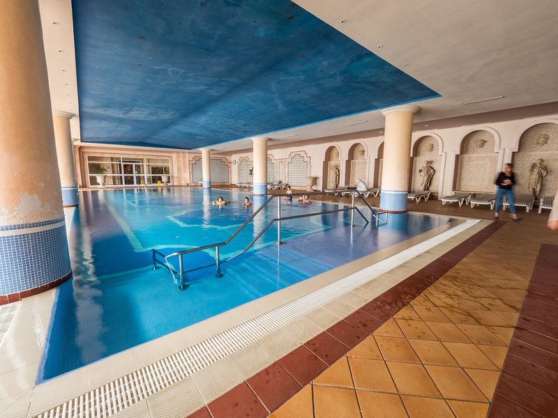 - Bazény: Detský bazén, Vyhrievaný vonkajší bazén, Vnútorný bazén, Vonkajší bazén, Slnečníky, Ležadlá pri bazéne