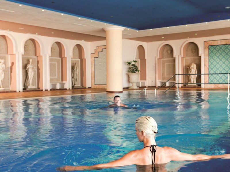 Sport & Fitness: Angenehm beheiztes Wasser im Poolbereich mit Innen- und Außenbecken sorgt für ein gesundes Badeerlebnis. Auch ein Kinderbadebereich ist vorhanden. Erfrischende Getränke an der Pool-/Snackbar und wohlige Entspannung im Whirlpool bringen alle Wasserratten in die beste Stimmung. Auf der Sonnenterrasse mit Liegestühlen und Schirmen lässt sich der Urlaub genießen. Sportliche Abwechslung bieten viele verschiedene Aktivitäten, die in der Unterbringung angeboten werden, wie z.B. Tennis, Boccia, Beachvolleyball und Golfen. Mit Windsurfen, Jetskifahren, Tretbootfahren, Bananenbootfahren, Kanufahren, Segeln, Katamaranfahren und Tauchen kommen auch Wassersportfreunde auf ihre Kosten. Den Gästen steht im Haus mit einem Fitnessstudio, Tischtennis, Billard, Darts und Aerobic ein breites Spektrum an Indoor-Sportarten zur Auswahl. Im Hotel werden verschiedene Wellnessangebote wie Spa, Sauna, Dampfbad, Hammam, Schönheitssalon und Massage-Anwendungen offeriert. Ein Animationsprogramm und ein Miniclub sind Möglichkeiten der Freizeitgestaltung.