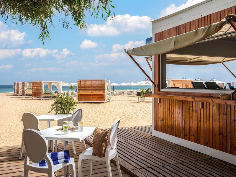 - Pláž: piesková, mierne sa zvažujúca, verejná s vlastnou hotelovou časťou, ležadlá: za poplatok, ležadlá: bez poplatku, slnečníky: bez poplatku