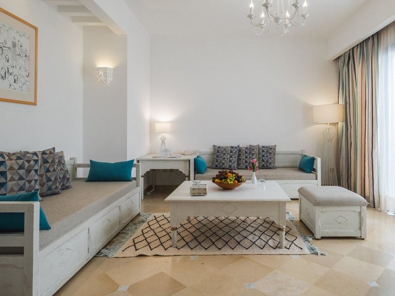 - Executive Juniorsuite Garden View (JSX2), Appartement, Nichtraucherzimmer, im Hauptgebäude, Gartenblick, Blick auf Medina, ca. 45 - 60 m², letzte Teilrenovierung 2020, Gesamtanzahl der Räume in diesem Zimmertyp: 20, Aufteilung wie folgt: kombiniertes Wohn-/Schlafzimmer, 1 Schlafzimmer, 1 Doppelbett (160x190cm), 2 Schlafsofas (90x190cm), Babybett: ohne Gebühr, Anfrage notwendig, Klimaanlage: individuell regelbar, kalt, warm, Heizung: individuell regelbar, Kamin, Fußboden: Fliesenboden, Safe, Kochnische, Kühlschrank, Backofen, Kochplatte, Mikrowelle, Kaffee-/Teezubereiter, Esstisch, Telefon, Internet: WLAN/WiFi, Fernseher: Flatscreen, im Wohnbereich, Reinigungsservice, Badewanne oder Dusche, separates WC, Balkon oder Terrasse: mit Sitzgelegenheit