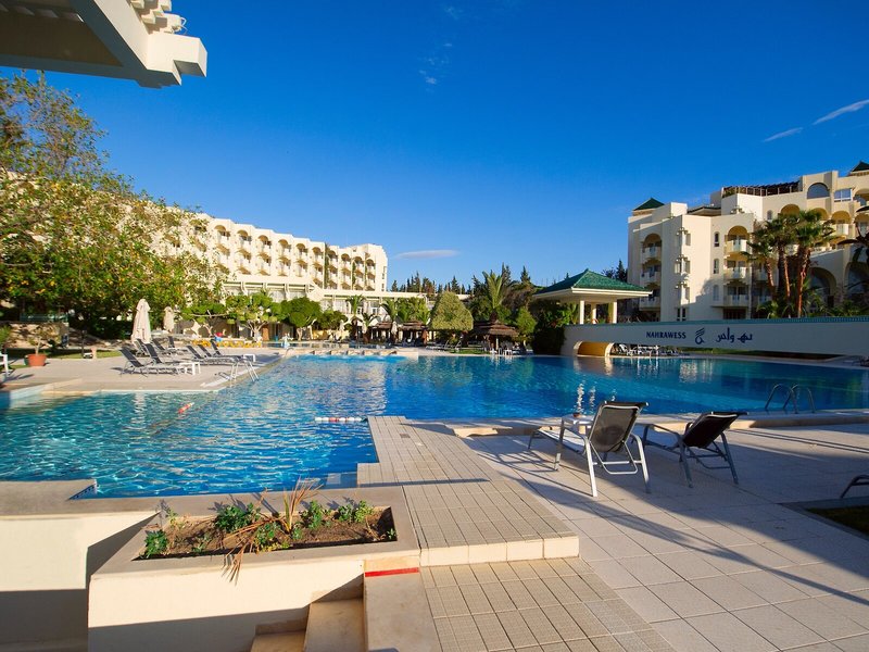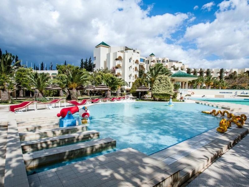 Poloha a okolie: Hotel sa nachádza priamo v srdci turistickej oblasti severného Hammametu, na pláži. Ponúka zelený park, ktorý vedie priamo na pláž Nahrawess (200 m). Rušný nočný život je vzdialený len 300 m a najbližšie reštaurácie, bary a obchody sú vzdialené asi 400 m. Zastávky verejnej dopravy sú vzdialené asi 500 m a medina a trhy souks sú vzdialené asi 5 km. Nabeul je vzdialený asi 8 km a letisko Carthage je vzdialené približne 75 km.