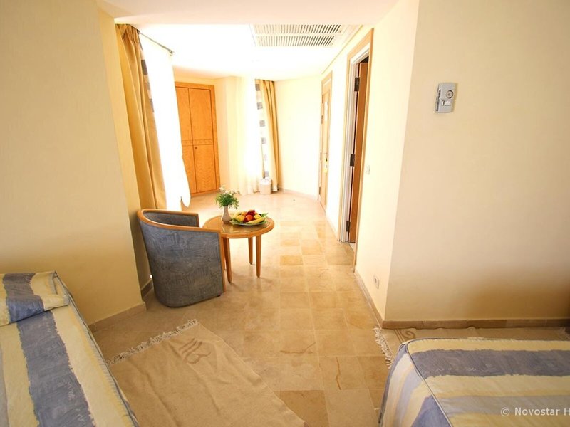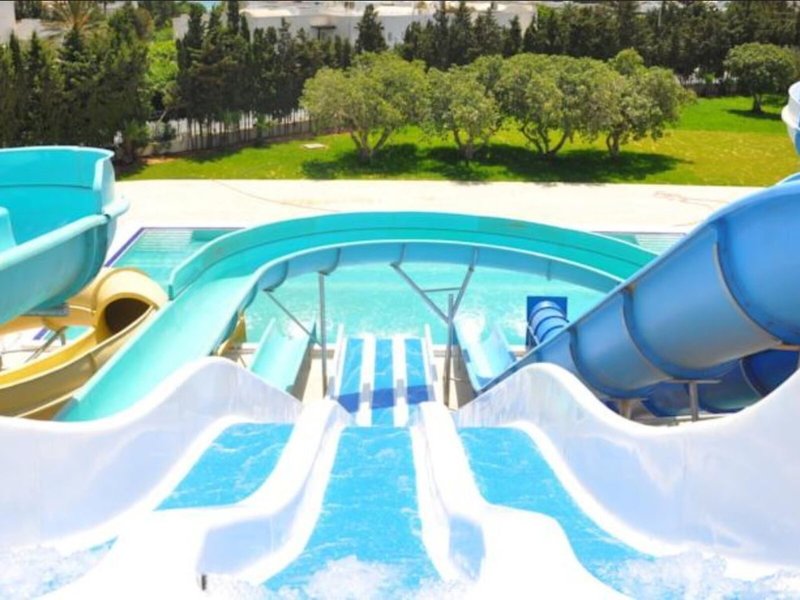 Šport a fitnes: Aktívny relax čaká na hostí v bazénovej časti s tromi vonkajšími bazénmi. Krytý bazén ponúka zábavu pri plávaní nezávisle od počasia. K dispozícii je aj detská bazénová zóna. V kúpalisku sa nachádza aj vírivka, tobogán a bar pri bazéne. K dispozícii je aj terasa s ležadlami a slnečníkmi. Tí, ktorí majú chuť na cvičenie, si môžu zahrať tenis a plážový volejbal. Milovníci vodných športov si tiež nájdu svoje miesto na vyžitie, vrátane šnorchlovania a za poplatok windsurfingu, jazdy na vodnom skútri, plachtenia a potápania. Hostia si v rezorte môžu užiť širokú škálu vnútorných športov vrátane posilňovne, stolného tenisu, biliardu, gymnastiky a aerobiku. Hotel ponúka rôzne wellness možnosti vrátane kúpeľov, sauny, parného kúpeľa, kozmetického salónu, masáží a talasoterapeutických procedúr. K dispozícii je aj detský klub a diskotéka.