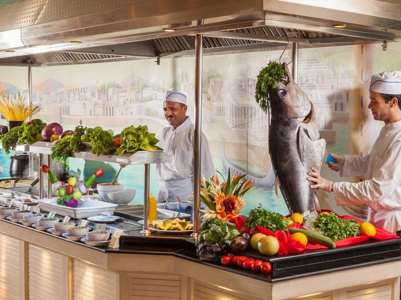 - Hlavná reštaurácia LE GRAND RESTAURANT: od 1 roka, kuchyňa: medzinárodná, bufet, nutná požiadavka, rezervácia nie je nutná, za poplatok, v cene All Inclusive, január - december, 12:00 - 14:30 hod. - 21:00 hod