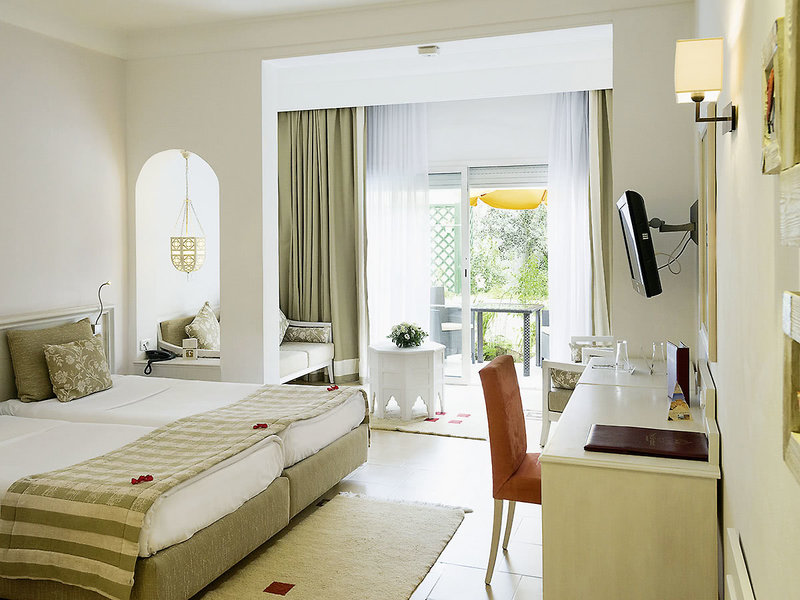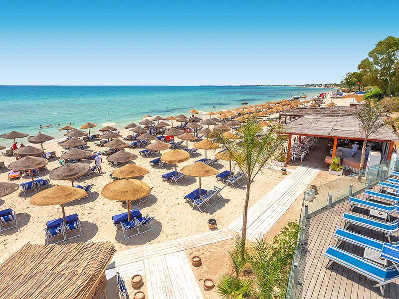 Lage: Direkt am feinsandigen, hoteleigenen Strand. Bis zur typisch arabischen Altstadt von Hammamet mit zahlreichen Restaurants, Bars und Einkaufsmöglichkeiten sind es ca. 2 km. Zum weitläufigen Park des Centre Culturel sind es ca. 500 m.