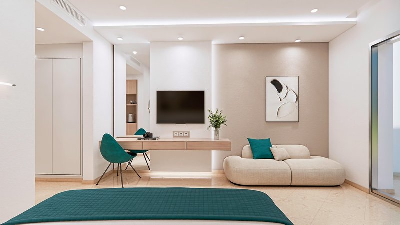 - 41-45 qm, Doppel, für Erwachsene ab 18 Jahre, Poolblick, Bettwäsche, Handtücher und Matratzen aus 100% Bio-Baumwolle, kombinierter Wohn-/Schlafraum, Couch, 1 Doppelbett (Kingsize), 1 Bad, Dusche, Badewanne, WC, Bademantel, Badeslipper, Haartrockner, Kosmetikspiegel, Klimaanlage, ca. 15.6.-15.9., Heizung, Mini-Kühlschrank, Safe, 1 TV (Sat-TV, deutschsprachiges Programm, landestypisches Programm, sonstiges Programm), WLAN, Wasserkocher, Kaffee/Tee, Balkon oder Terrasse, Handtuchwechsel (täglich), bei Ankunft im Zimmer Wasser