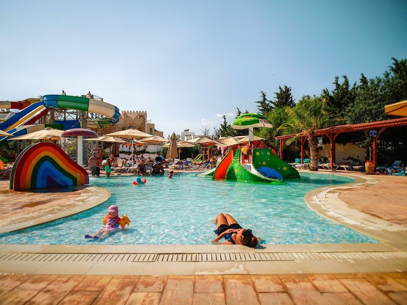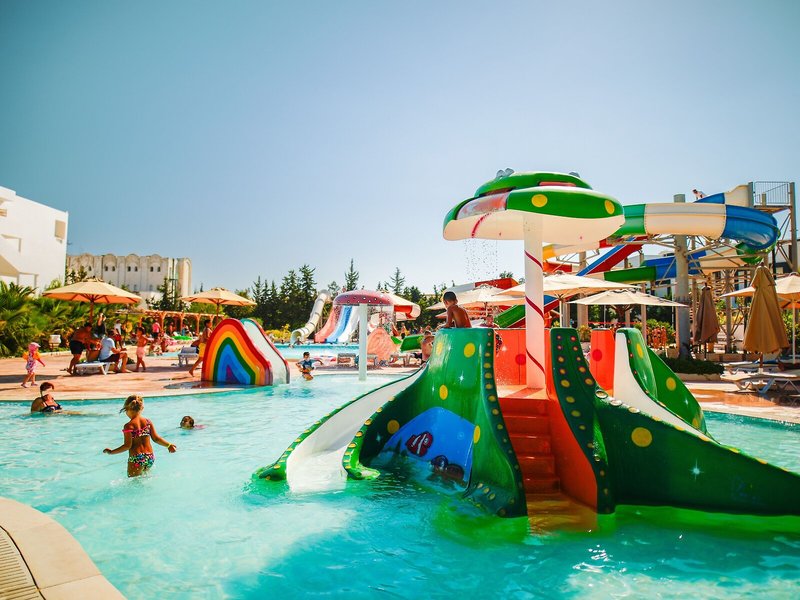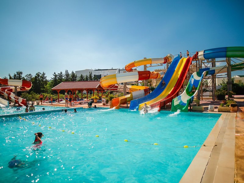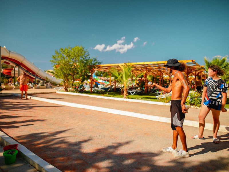 Sport & Fitness: Aktive Erholung erwartet die Gäste im Poolbereich mit 2 Outdoorpools. Das Hallenbad bietet witterungsunabhängiges Badevergnügen. Darüber hinaus gibt es einen Planschbereich für Kinder. Auch eine Terrasse mit Sonnenliegen und Sonnenschirmen ist vorhanden. Eine Pool-/Snackbar ist vorhanden. Das Hotel bietet ein sehr umfangreiches Outdoor-Sportprogramm mit Tennis, Boccia, Beachvolleyball, Volleyball, Minigolf, Golfen und Bogenschießen sowie gegen Gebühr Reiten. Den Gästen der Unterbringung wird ein großes Wassersportprogramm geboten, darunter Wasseraerobic und Aqua-Fitness sowie gegen Gebühr Wasserskifahren, Windsurfen, Jetskifahren, Tretbootfahren und Bananenbootfahren. Das Haus bietet eine Vielzahl an Möglichkeiten zur sportlichen Aktivität im Indoor-Bereich, z.B. Tischtennis, Darts, Gymnastik und Aerobic sowie gebührenpflichtig ein Fitnessstudio und Billard. Das Hotel verfügt über einen Wellnessbereich mit einem Spa, einer Sauna und einem Hammam sowie gegen zusätzliche Gebühr ein Dampfbad und Massage-Anwendungen. Unterhaltung und Abwechslung in der Freizeit bieten ein Animationsprogramm und ein Miniclub.
