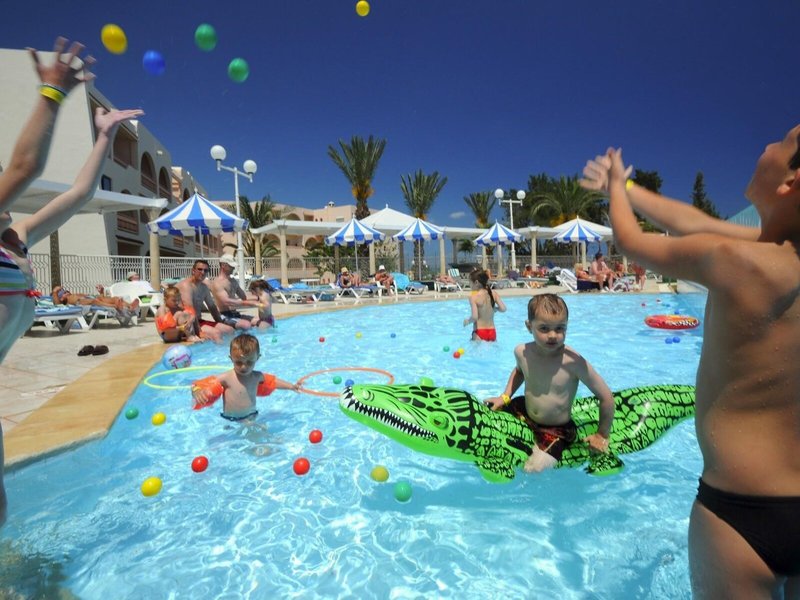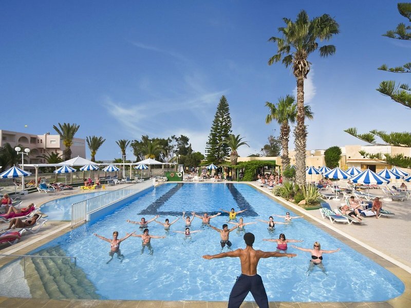 Sport & Fitness: Ein Außenpool und ein Hallenbad laden zum entspannten Badevergnügen ein. Kinder können sich in einem Planschbecken austoben. Erfrischende Getränke an der Pool-/Snackbar und wohlige Entspannung im Whirlpool bringen alle Wasserratten in die beste Stimmung. Zur Erholung laden Liegestühle unter Sonnenschirmen auf der Sonnenterrasse ein. Sportliche Abwechslung bieten viele verschiedene Aktivitäten, die in der Unterbringung angeboten werden, wie z.B. Radfahren/Mountainbiking, Tennis, Boccia, Beachvolleyball, Volleyball, Basketball und Bogenschießen. Den Gästen des Feriendorfes wird ein großes Wassersportprogramm geboten, darunter Wasseraerobic und Aqua-Fitness sowie gegen Gebühr Wasserskifahren, Windsurfen, Jetskifahren, Motorbootfahren, Tretbootfahren, Bananenbootfahren und Segeln. Der Komplex bietet eine Vielzahl an Möglichkeiten zur sportlichen Aktivität im Indoor-Bereich, wie etwa Tischtennis, Darts, Aerobic und Handball sowie gebührenpflichtig Billard. Die Unterbringung verfügt über einen Wellnessbereich mit einem Spa und einer Sauna sowie gegen zusätzliche Gebühr ein Dampfbad, einen Schönheitssalon und Massage-Anwendungen. Ein Miniclub, eine Minidisco und eine Disco sorgen für besten Freizeitspaß.