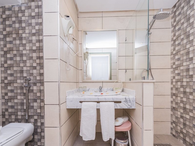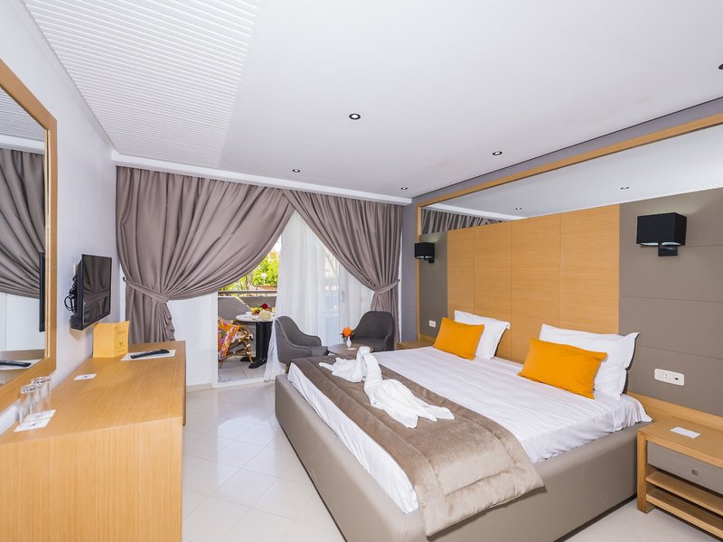 Vaše ubytovanie: Klimatizácia a individuálne nastaviteľné kúrenie zabezpečujú príjemnú teplotu v izbe. Hostia si môžu oddýchnuť na balkóne alebo súkromnej terase väčšiny izieb a vychutnať si výhľad na more. Izby s kobercom sú vybavené manželskou posteľou. Prístelky sú k dispozícii na požiadanie. Izby sú vybavené mini chladničkou, telefónom, satelitnou/káblovou TV a trezorom. V kúpeľniach je sušič vlasov. K dispozícii sú aj bezbariérové izby. Rodinné izby sú k dispozícii pre rodičov s deťmi.
