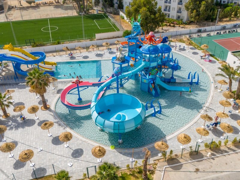 - Pools: 4 (Kinderpool: wetterabhängig, ohne Gebühr, Liegestühle / Pool: November - April, ohne Gebühr, Liegen / Aquapark: Mai - September, Liegestühle / Adults-only-Pool)