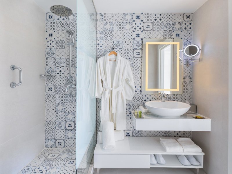 - Guest Room Limited Sea View (DZX3), Doppelzimmer, Mindestalter im Zimmer: 2 Jahre, im Hauptgebäude, Meerseite, seitlicher Meerblick, ca. 34 - 40 m², letzte Komplettrenovierung 2023, Gesamtanzahl der Räume in diesem Zimmertyp: 1, Aufteilung wie folgt: kombiniertes Wohn-/Schlafzimmer, 1 Zustellbett (90x190cm), Babybett: ohne Gebühr, Anfrage & Reservierung notwendig, Klimaanlage: ohne Gebühr, individuell regelbar, kalt, warm, Heizung: individuell regelbar, Fußboden: Fliesenboden, Safe: ohne Gebühr, Sofa, Schreibtisch, Bügeleisen, Bügelbrett, Minibar: gegen Gebühr, Wasser: ohne Gebühr, Telefon, Internet: WLAN/WiFi: ohne Gebühr, Fernseher: Flatscreen, im Schlafzimmer, deutsches Programm, Sat-TV, Roomservice: täglich 06:00 Uhr - 23:00 Uhr, gegen Gebühr, Reinigungsservice: täglich, ohne Gebühr, Badewanne oder Dusche, separates WC, Föhn, Kosmetikspiegel, Balkon oder Terrasse: mit Sitzgelegenheit