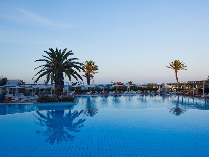 Sport & Fitness: Angenehm beheiztes Wasser im Poolbereich mit Innen- und Außenbecken sorgt für ein gesundes Badeerlebnis. Auch ein Kinderbadebereich ist vorhanden. Erfrischende Getränke an der Pool-/Snackbar und wohlige Entspannung im Whirlpool bringen alle Wasserratten in die beste Stimmung. Auf der Sonnenterrasse mit Liegestühlen und Schirmen lässt sich der Urlaub genießen. Sportliche Abwechslung bieten viele verschiedene Aktivitäten, die in dem Hotel angeboten werden, wie z.B. Tennis, Boccia, Beachvolleyball, Minigolf, Golfen, Bogenschießen und Reiten. Mit Tauchen und gegen Gebühr Windsurfen, Tretbootfahren und Kanufahren kommen auch Wassersportfreunde auf ihre Kosten. Den Gästen steht in der Unterbringung mit einem Fitnessstudio, Tischtennis, Billard, Darts, Bowling, Gymnastik und Aerobic ein breites Spektrum an Indoor-Sportarten zur Auswahl. Im Haus werden verschiedene Wellnessangebote wie Spa, Sauna, Dampfbad, Hammam und Massage-Anwendungen offeriert. Zu den weiteren Freizeitangeboten zählen ein Animationsprogramm, ein Miniclub, eine Disco und ein Nachtclub.