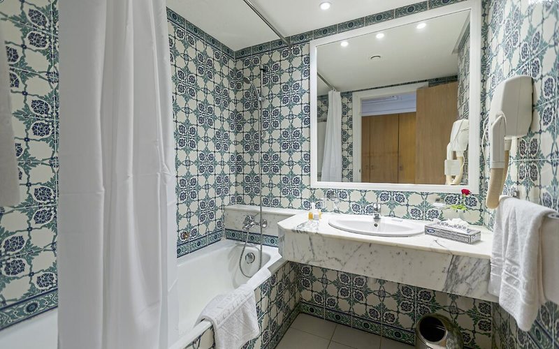 - 16-20 qm, Zweibett, mit Zustellbett, Hauptgebäude, Meerblick, Twinbett, Doppelbett, 1 Bad, Badewanne, Handbrause, 1 WC, Haartrockner, Teppich, Klimaanlage, individuell regulierbar, Heizung, Korridor/Flur, Safe (kostenpflichtig), 1 TV (Sat-TV, deutschsprachiges Programm, landestypisches Programm, sonstiges Programm), Kühlschrank, Balkon oder Terrasse, Bettwäschewechsel (3 x wöchentlich), Handtuchwechsel (täglich)