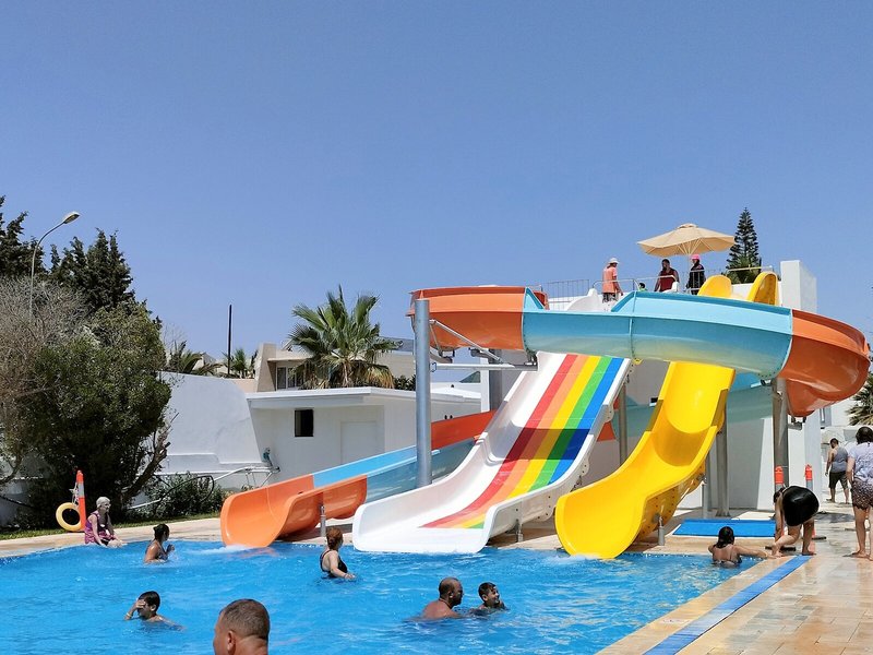 Sport & Fitness: Während die Erwachsenen im Außenpool ein paar Runden schwimmen, kommen die Kinder im Planschbecken auf ihre Kosten. Nervenkitzel auf der Wasserrutsche, erfrischende Getränke an der Poolbar und wohlige Muskelentspannung im Whirlpool (gegen Gebühr) – für jede Stimmung und Kondition bietet der Badebereich etwas an. Zur Erholung laden Liegestühle unter Sonnenschirmen auf der Sonnenterrasse ein. Das Hotel bietet mit Radfahren/Mountainbiking, Tennis, Beachvolleyball, Volleyball und Bogenschießen Möglichkeiten zum Sport im Freien. Zum Wassersportprogramm des Hauses gehören Windsurfen, Segeln, Tauchen und Aqua-Fitness. Die Unterbringung bietet eine Vielzahl an Möglichkeiten zur sportlichen Aktivität im Indoor-Bereich, wie etwa ein Fitnessstudio, Tischtennis und Gymnastik sowie gebührenpflichtig Billard. Im Hotel werden verschiedene Wellnessangebote wie ein Spa und ein Hammam offeriert. Gegen Gebühr können die Gäste zudem eine Sauna, ein Dampfbad und Massage-Anwendungen in Anspruch nehmen. Ein Miniclub und eine Disco sind Möglichkeiten der Freizeitgestaltung.