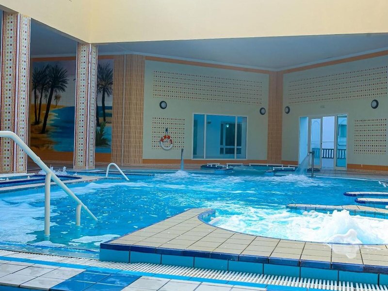 Sport & Fitness: Der Poolbereich (Salz- und Süßwasser, zum Teil beheizt) bietet 2 Hallen- und 2 Freibäder (gegen Gebühr). Für Kinder gibt es einen speziellen Badebereich. Erfrischende Getränke an der Pool-/Snackbar und wohlige Entspannung im Whirlpool (gegen Gebühr) bringen alle Wasserratten in die beste Stimmung. Auf der Sonnenterrasse mit Liegestühlen und Schirmen lässt sich der Urlaub genießen. Abwechslung bieten viele verschiedene Sportaktivitäten, die in dem Haus angeboten werden, wie z.B. Radfahren/Mountainbiking, Tennis, Boccia, Beachvolleyball und Bogenschießen und gegen Gebühr Minigolf und Golfen. Die Unterbringung bietet eine Vielzahl an Möglichkeiten zur sportlichen Aktivität im Indoor-Bereich, wie etwa Tischtennis, Bowling, Gymnastik und Aerobic sowie gebührenpflichtig ein Fitnessstudio. Das Hotel verfügt über einen Wellnessbereich mit einem Spa, einem Hammam und einem Schönheitssalon sowie gegen zusätzliche Gebühr eine Sauna, ein Dampfbad, Massage-Anwendungen und ein Solarium. Ein Animationsprogramm, ein Miniclub, eine Disco und ein Nachtclub sorgen für besten Freizeitspaß.