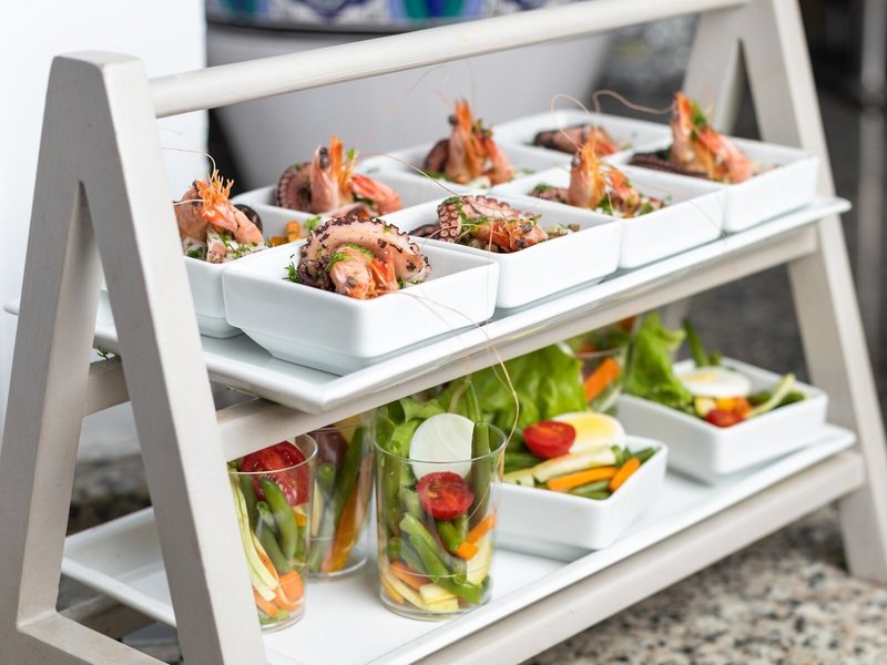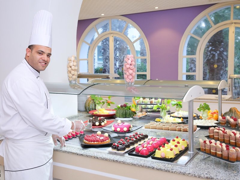 - Hlavná reštaurácia MEDITERRANEE: Kuchyňa: medzinárodná, miestna, regionálna, ryby/morské plody, grilované jedlá, sezónne jedlá, bufet, bezplatne, január - december, 7:00 - 10:00, 12:30 - 14:00, 18:30 - 19:30 a 20:00 - 21:00, dve večere, k dispozícii je detská stolička.