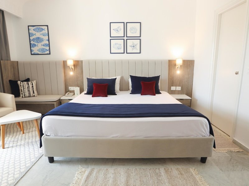 - Double Room Sea View (DZM1), Doppelzimmer, im Hauptgebäude, Meerseite, Meerblick, Poolblick, ca. 28 m², letzte Komplettrenovierung 2016, Gesamtanzahl der Räume in diesem Zimmertyp: 1, Aufteilung wie folgt: kombiniertes Wohn-/Schlafzimmer, 1 Schlafzimmer, Klimaanlage: ohne Gebühr, wetterabhängig, zentral gesteuert, Heizung: wetterabhängig, zentral gesteuert, Fußboden: Fliesenboden, Kühlschrank: ohne Gebühr, Telefon, Internet: WLAN/WiFi: ohne Gebühr, Fernseher: Flatscreen, Sat-TV, Reinigungsservice: täglich, ohne Gebühr, Badewanne oder Dusche, WC, separates WC, Föhn, Balkon: mit Sitzgelegenheit