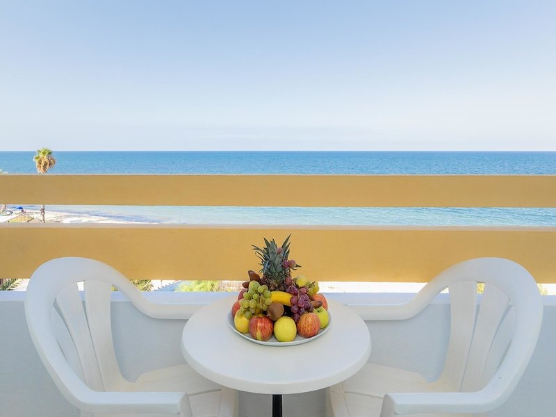 - Double Room Sea View (DZM1), Doppelzimmer, im Nebengebäude, Neubau, Meerblick, ca. 28 m², Gesamtanzahl der Räume in diesem Zimmertyp: 1, Aufteilung wie folgt: 1 Schlafzimmer, Klimaanlage: ohne Gebühr, Juni - September; saisonabhängig, zentral gesteuert, Heizung: individuell regelbar, zentral gesteuert, Fußboden: Fliesenboden, Minibar: ohne Gebühr, Telefon, Internet: WLAN/WiFi: ohne Gebühr, Fernseher: Flatscreen, deutsches Programm, Sat-TV, Reinigungsservice: täglich, ohne Gebühr, Badewanne oder Dusche, separates WC, Föhn, Balkon oder Terrasse: mit Sitzgelegenheit