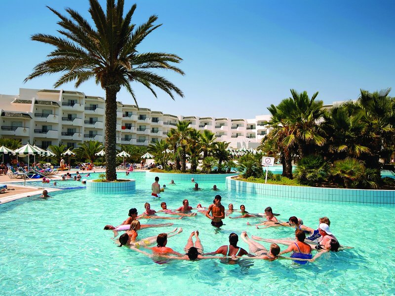 Sport & Fitness: Neben Innen- und Außenpools gibt es einen Kinderbadebereich. Zur Erholung laden Liegestühle unter Sonnenschirmen auf der Sonnenterrasse ein. Eine Pool-/Snackbar ist vorhanden. Das Hotel bietet mit Tennis, Boccia, Beachvolleyball, Volleyball, Minigolf, Bogenschießen, Angeln und Reiten Möglichkeiten zum Sport im Freien. Mit Wasserskifahren, Windsurfen, Bananenbootfahren, Kanufahren, Segeln, Katamaranfahren, Kajakfahren, Schnorcheln, Tauchen, Wasseraerobic und Aqua-Fitness kommen auch Wassersportfreunde auf ihre Kosten. Den Gästen steht im Haus mit einem Fitnessstudio, Tischtennis, Badminton, Billard, Darts, Gymnastik und Aerobic ein breites Spektrum an Indoor-Sportarten zur Auswahl. In der Unterbringung werden verschiedene Wellnessangebote wie Spa, Sauna, Hammam, Schönheitssalon, Massage-Anwendungen, Kuranwendungen, Thalasso-Anwendungen, Anti-Aging-Anwendungen und Ayurveda-Anwendungen offeriert. Zu den weiteren Freizeitangeboten zählen ein Animationsprogramm, ein Miniclub, eine Minidisco und eine Disco.