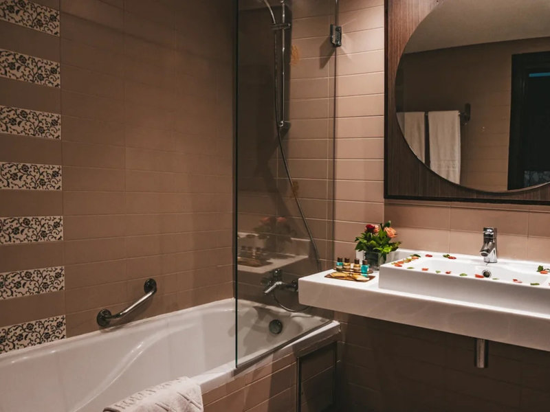 - Single with Child Standard Double Room (DSX1), Doppelzimmer, Nichtraucherzimmer, im Hauptgebäude, Meerblick, Gartenblick, ca. 33 m², letzte Komplettrenovierung 2010, letzte Teilrenovierung 2019, Gesamtanzahl der Räume in diesem Zimmertyp: 1, Aufteilung wie folgt: 1 Schlafzimmer, Klimaanlage: ohne Gebühr, Juni - September, zentral gesteuert, kalt, warm, Heizung: November - März, Fußboden: Parkett, Safe: gegen Gebühr, Schreibtisch, Minibar: ohne Gebühr, Wasser: ohne Gebühr, Telefon, Internet: WLAN/WiFi: ohne Gebühr, Fernseher: im Badezimmer, Sat-TV, Roomservice: täglich, ohne Gebühr, Reinigungsservice: täglich, ohne Gebühr, Badewanne, WC, Föhn, Kosmetikspiegel, Balkon: mit Sitzgelegenheit