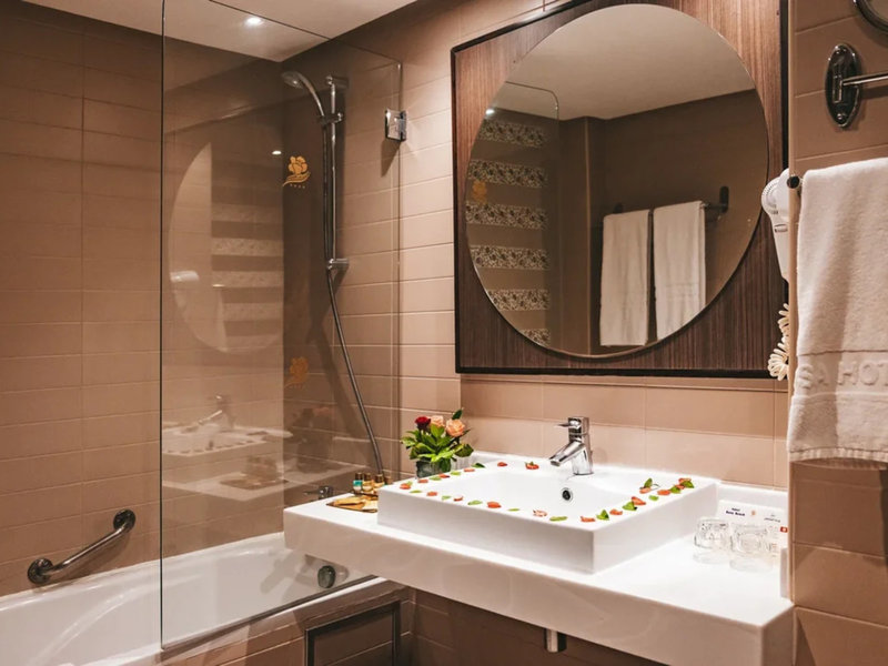 - Dvojlôžková izba Long Stay (DZX3) : zadarmo, jún - september, centrálne riadené, studené, teplé, kúrenie: november - marec, centrálne riadené, podlaha: parkety, trezor: zadarmo, minibar: zadarmo, voda: zadarmo, Internet: WLAN/WiFi: zadarmo, TV: satelitná TV, upratovanie: denne, bez poplatku, vaňa, WC, fén, kozmetické zrkadlo, balkón, balkón alebo terasa: s posedením