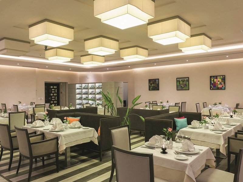 Jedlo a pitie: V jedálni sa nachádza lobby bar. V dvoch klimatizovaných reštauráciách čaká na hostí vynikajúca kuchyňa a pohostinnosť. Osviežujúce nápoje v plážovom bare zaručia relaxačný čas. Bohaté raňajky formou bufetu, obedy a večere sú chutné a pestré. Na požiadanie je k dispozícii aj detské menu. K dispozícii je aj občerstvenie. Alkoholické a nealkoholické nápoje sú zahrnuté v cene pre hostí.
