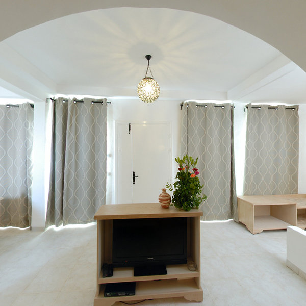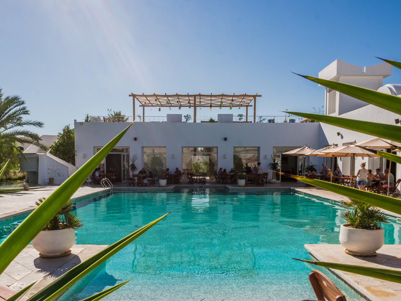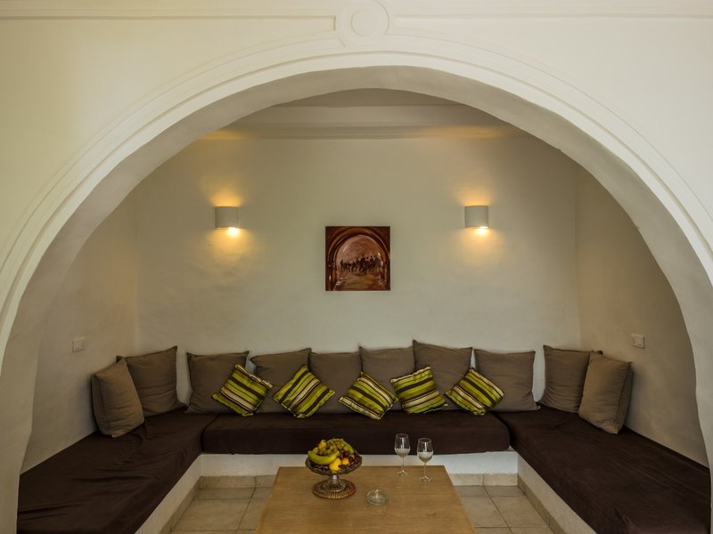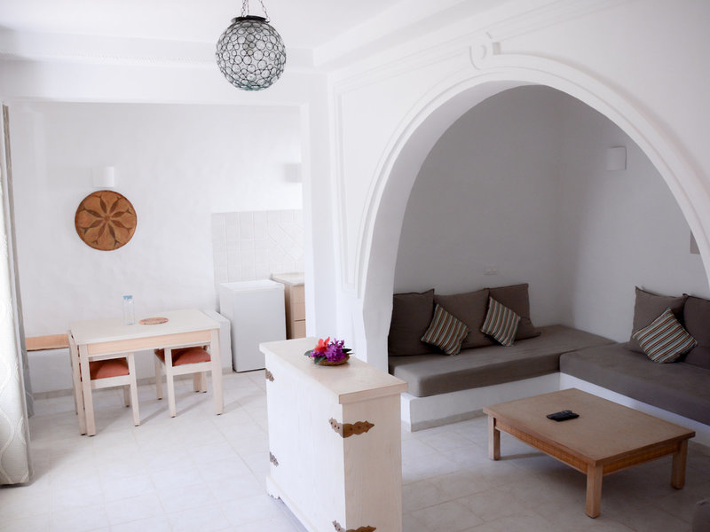 Lage & Umgebung Eingebettet in 3 Hektar Grünfläche, ca. 300 m vom Privatstrand entfernt. Das Ortszentrum von Midoun ist ca. 7 km entfernt, der Flughafen ca. 25 km.