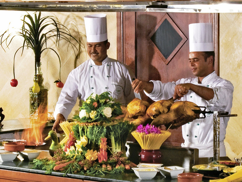 - Reštaurácia PALMERAIE: 1 hviezda Michelin, kuchyňa: medzinárodná, bufet, show cooking, zdarma, v cene All Inclusive, jún - september; sezónne; v závislosti od počasia, s terasou