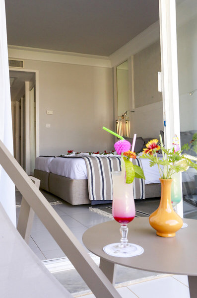 - Jednolôžková izba Deluxe s výhľadom do záhrady (DSX1), dvojlôžková izba, nefajčiarska izba, výhľad do záhrady, cca 25 - 29 m², posledná čiastočná rekonštrukcia v roku 2024, celkový počet izieb v tomto type izby: 1, rozloženie: kombinovaná obývacia izba/spálňa, 2 samostatné postele (90x180cm), detská postieľka: bez poplatku, klimatizácia: jún - september, centrálne ovládané, chladenie, kúrenie: november - február, centrálne ovládané, podlaha: dlažba, trezor: cca 1.5 EUR, telefón, Internet: WLAN/WiFi: bez poplatku, Televízia: plochá obrazovka, v spálni, SAT TV, upratovanie: denne, za poplatok, sprcha, WC, samostatné WC, fén, balkón: s posedením, balkón resp. terasa: s posedením