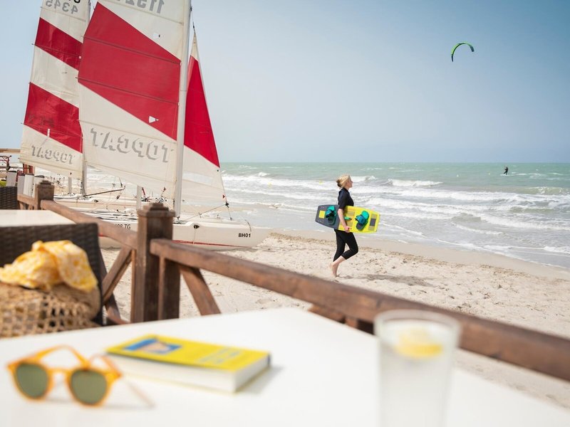 - Pláž: piesočná, mierne sa zvažujúca, dĺžka pláže: cca 2 km, ležadlá/slnečníky: bez poplatku