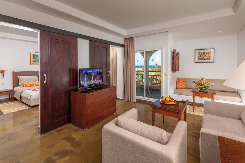 - 61-70 qm, Juniorsuite, Meerblick, Nichtraucher, 1 separater Wohnraum, Doppelbett, 1 Bad, Dusche oder Badewanne, WC, Haartrockner, Fliesen, Klimaanlage, ca. 15.6.-15.9., Safe, 1 TV (Sat-TV, deutschsprachiges Programm, landestypisches Programm, Flachbildschirm), Kühlschrank, Balkon
