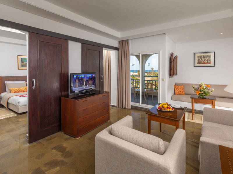 - Family Suite (SUX1), Suite, Nichtraucherzimmer, Meerseite, Meerblick, ca. 68 m², letzte Teilrenovierung 2019, Gesamtanzahl der Räume in diesem Zimmertyp: 2, Aufteilung wie folgt: Wohnzimmer, 1 Schlafzimmer, Klimaanlage: ohne Gebühr, zentral gesteuert, Heizung: zentral gesteuert, Fußboden: Fliesenboden, Safe: ohne Gebühr, Sofa, Schreibtisch, Wäschetrockner, Minibar: ohne Gebühr, bei All Inclusive inklusive, Wasser: ohne Gebühr, bei All Inclusive inklusive, Telefon, Internet: WLAN/WiFi: ohne Gebühr, Fernseher: im Wohnbereich, im Schlafzimmer, Reinigungsservice: täglich 08:00 Uhr - 16:00 Uhr, ohne Gebühr, Badewanne oder Dusche, WC, Balkon: mit Sitzgelegenheit