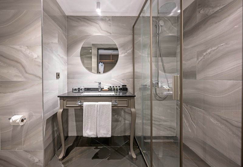 - 26-30 m2, dvojlôžková, písací stôl, manželské postele (1 manželská posteľ alebo 2 samostatné lôžka), 2 rozkladacie pohovky, 1 kúpeľňa, sprcha, sušič vlasov, dlažba, klimatizácia, centrálne ovládané, minibar, trezor, TV (satelitná TV), balkón , WiFi