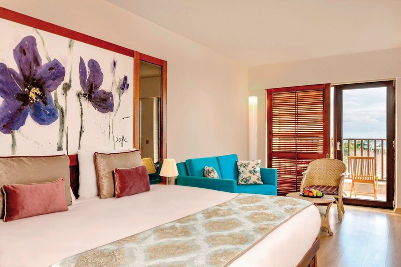 - 51-60 qm, Familien, Meerblick oder Gartenblick, 1 separater Wohnraum, Sitzecke, Couch, 1 Einzelbett, 1 Doppelbett, Dusche, WC, Badeslipper, Klimaanlage, zentral gesteuert, Minibar, Wasserkocher, Kaffee/Tee, Balkon