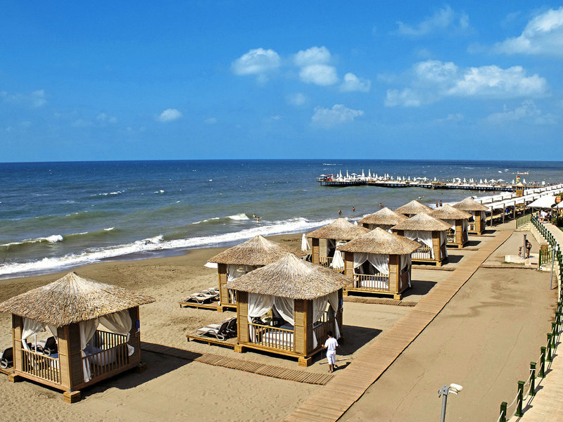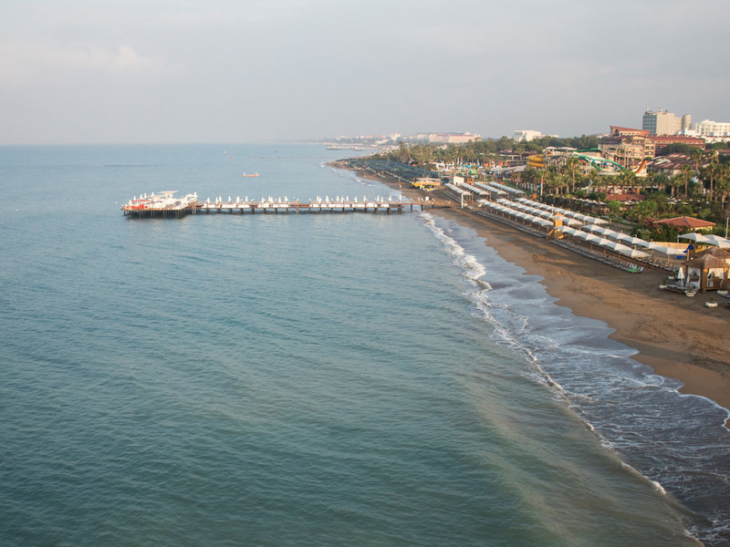 Poloha a okolie Nachádza sa priamo na dlhej, mierne sa zvažujúcej piesočnatej/kamienkovej pláži. Ponad more vedie dlhá lávka vo vlastnej časti hotela, ktorá je dlhá cca 290 m. Do centra mesta Belek je to cca 6 km. Čas prenosu: cca 40 minút.