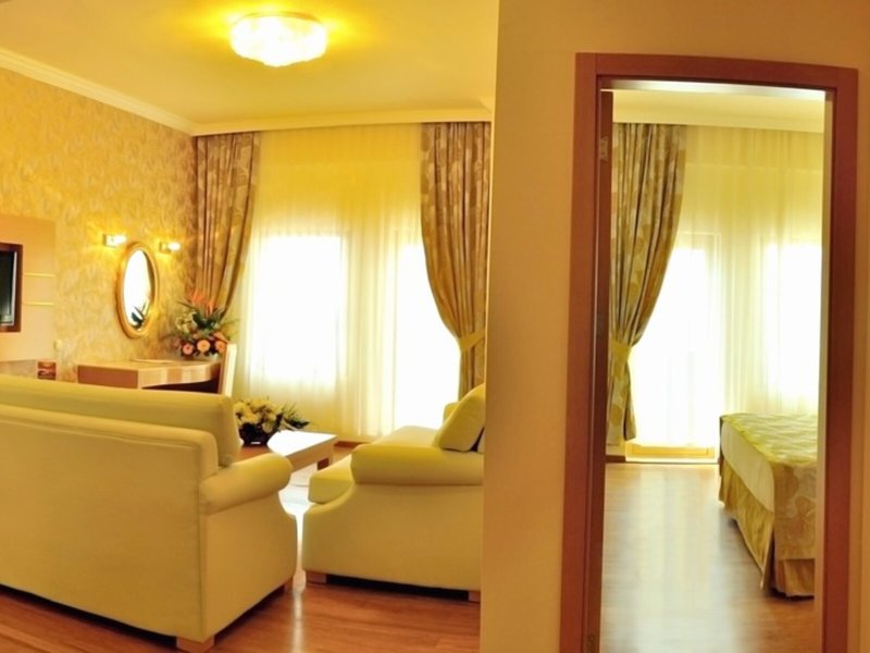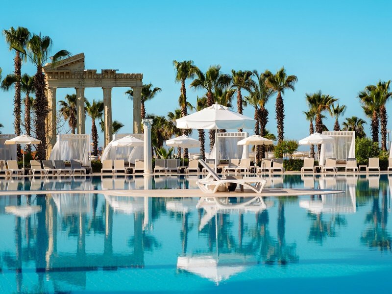 Poloha a okolie Nádherný rezort sa nachádza priamo na pláži v Beleku. Za pobrežím vás niekoľko golfových ihrísk pozýva zahrať si golf s nádherným výhľadom. Zážitkový bazén Troy Aqua je vzdialený približne 900 m a rímsky amfiteáter a malebný most Eurymedon v Aspendose približne 20 km.