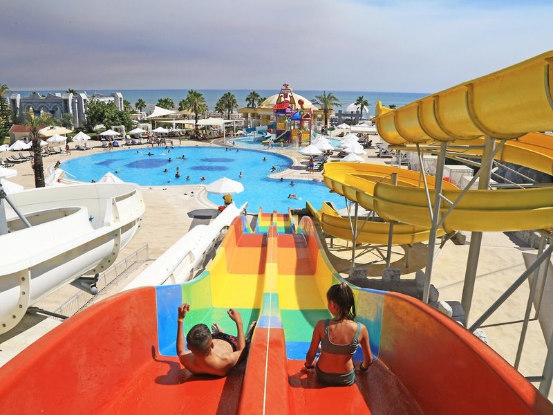 - Pools: 5 (Pool: Liegen, Liegestühle / Pool: ohne Gebühr, Liegestühle / Kinderpool: ohne Gebühr, Liegestühle / Aquapark: ohne Gebühr, Liegestühle / Aquapark: ohne Gebühr, Liegestühle)
