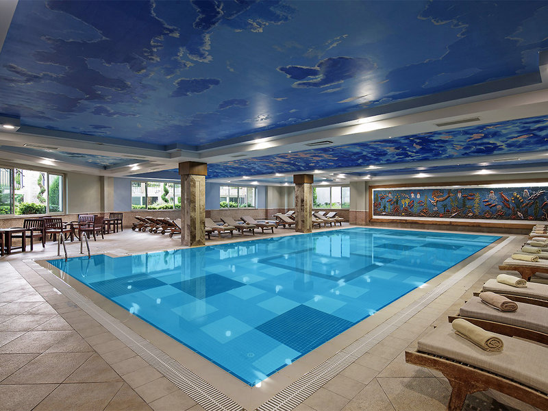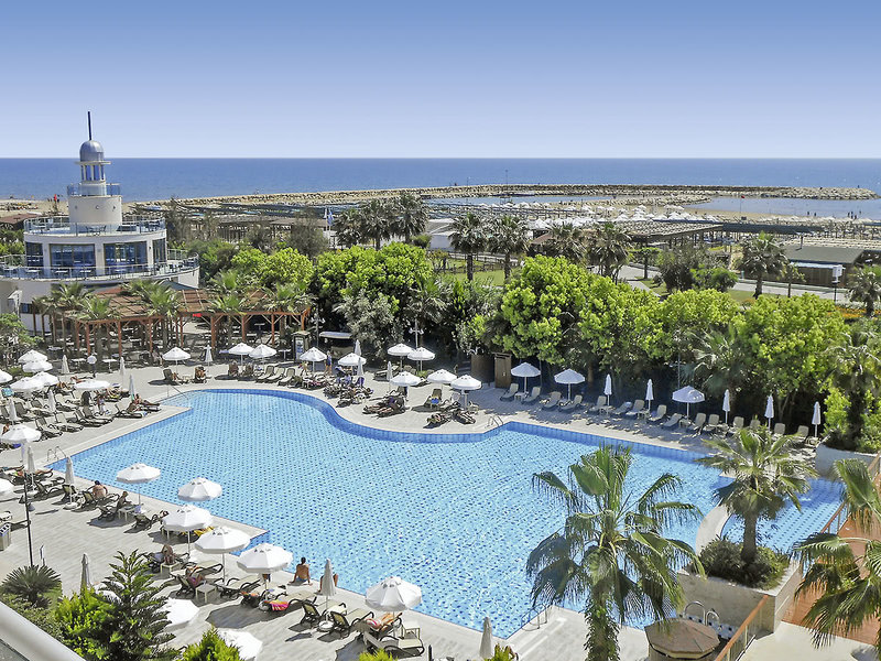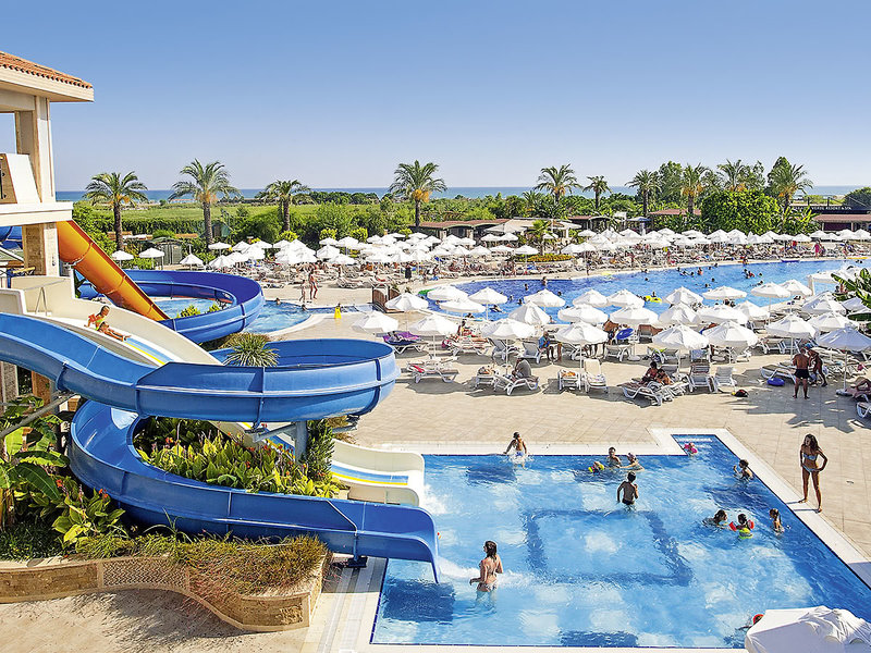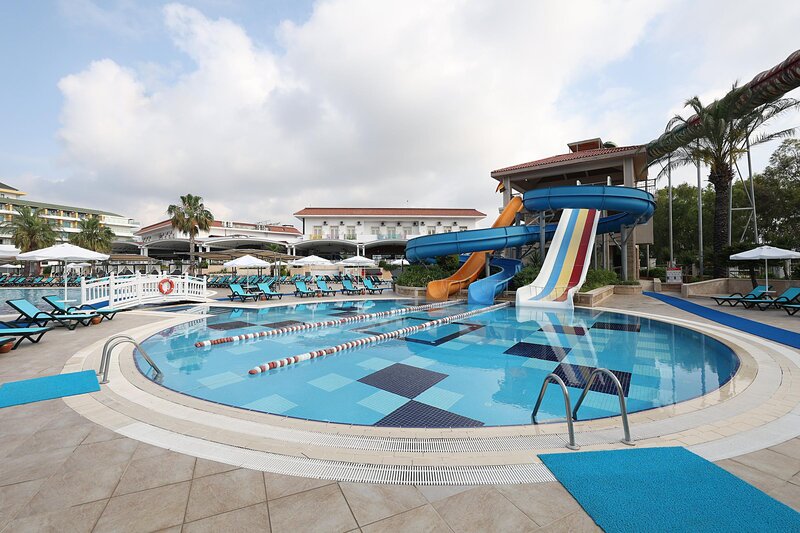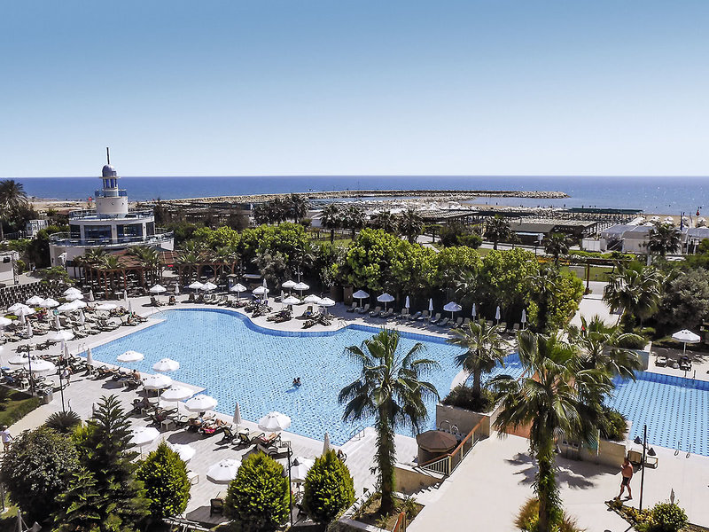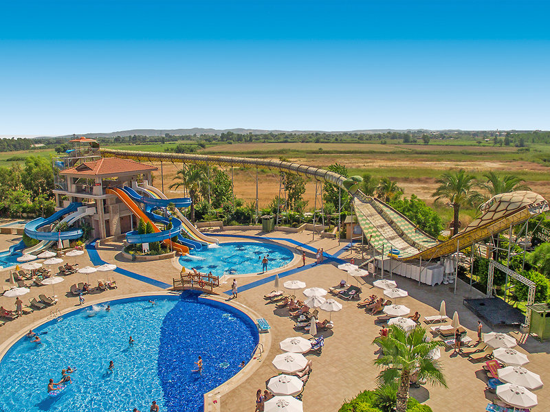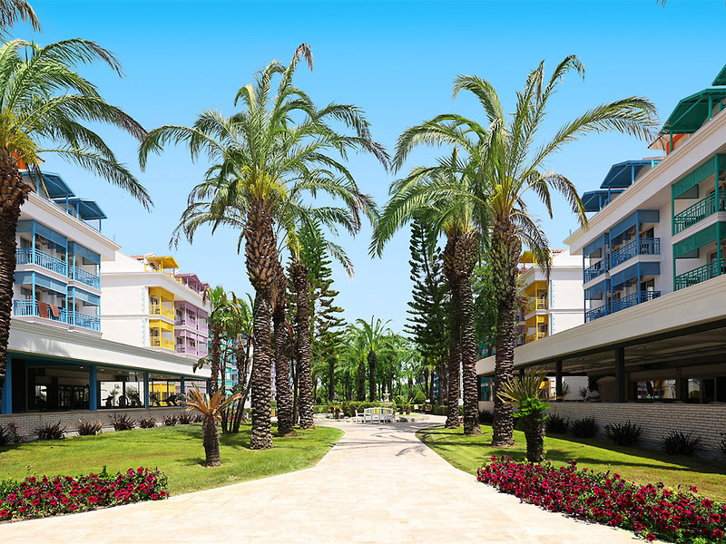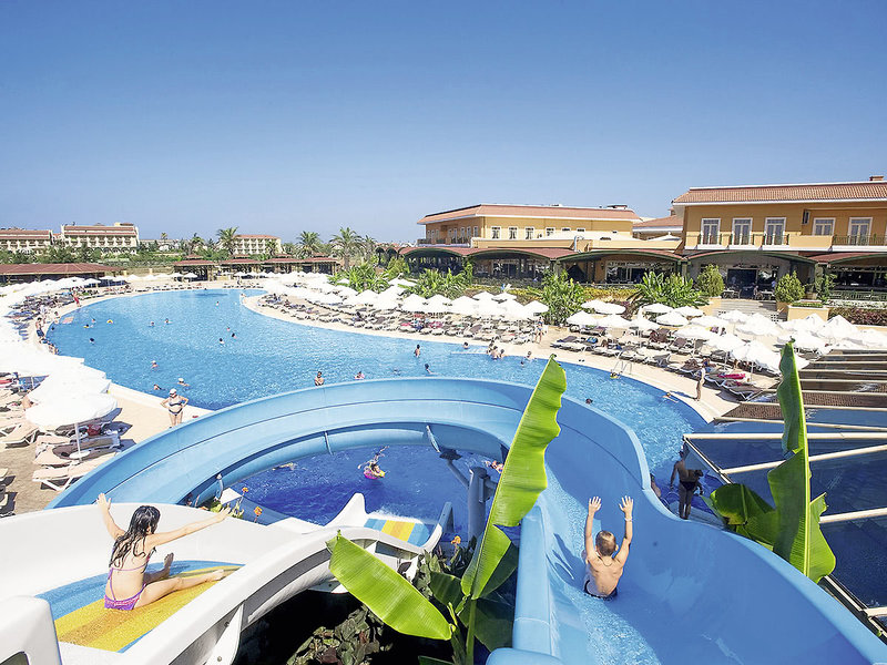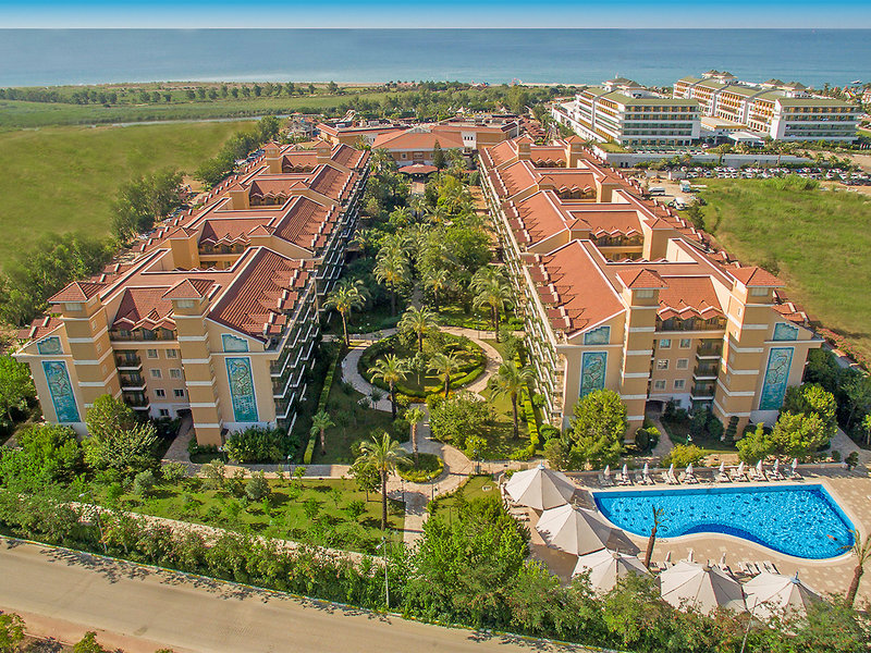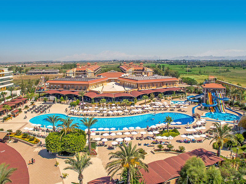 Ausstattung: 8 Gebäude, ca. 32.000 qm große Gartenlandschaft. Swimmingpoollandschaft, 6 Wasserrutschen (stdw.), Relaxpool, Sonnenterr., Liegen, Schirme, Auflagen, Badetücher, Pool-/Snackbar, Beach-/ Snackbar am Strand. Empfangsgebäude, Rezeption, Lobbybar, WLAN, TV-Ecke, Buffetrestaurant, Terrasse, 3 À-la-carte-Restaurants (italienisch, türkisch; Reserv., nach Verfügbarkeit; Meeresfrüchtespezialitäten (geg. Geb.), jew. ab 7 J.), Cafeteria, Bars, Spieleraum, Diskothek, Geschäfte, Wellnesscenter, Friseur. Landeskat.: 5 St., 720 Zi., 5 Etg., 8 Lifte.